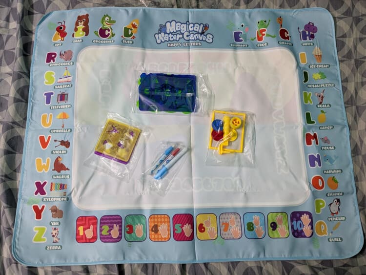 Turn playtime into a fun learning adventure with the Magical Water Canvas Drawing Mat!